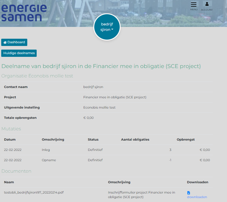 Via het contactenportaal kunnen gebruikers ook officiële documenten zoals deelname-overeenkomsten inzien en downloaden. Als beheerder kan je instellen welke documenten je met de deelnemers wilt delen (zoals projectomschrijvingen of ALV-verslagen). Een voorbeeld: