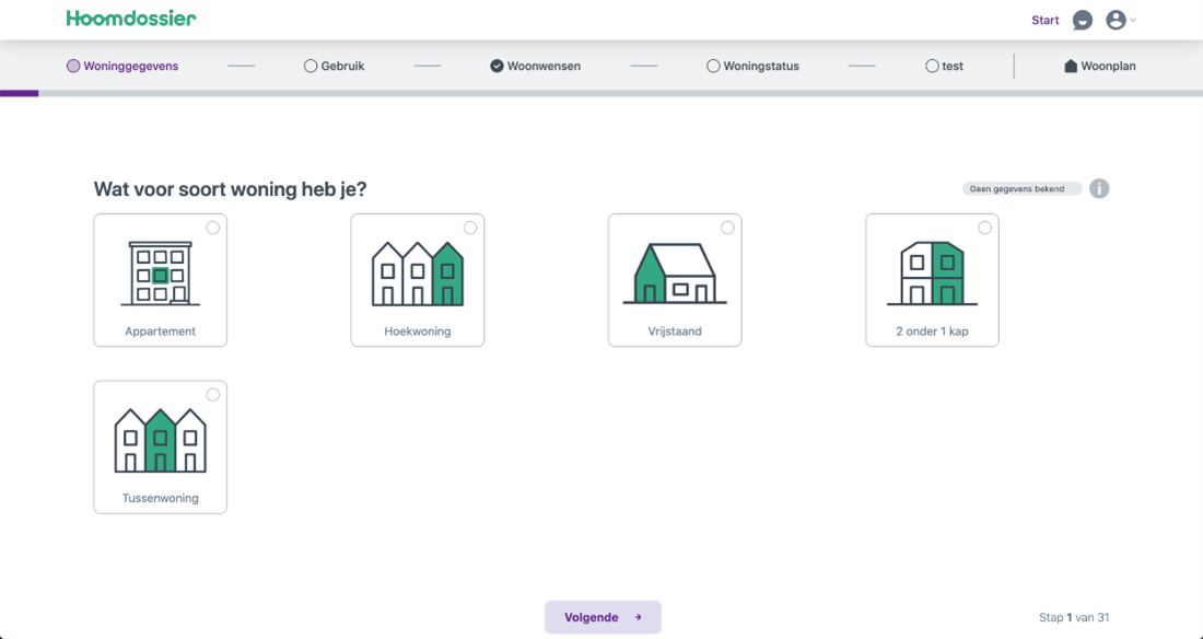 - De coach of de bewoner maakt een nieuw woningdossier aan.